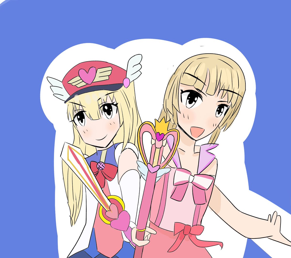 お題箱「プリコネ 魔法少女モニカとデレステ 魔法少女横山千佳」 お題ありがとうございました!!相性は今まで描いた中で一番かも!(なのに色雑ですみません…)