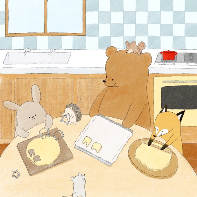 くまさんのお家でみんなでお菓子作り🍪 #イラスト #お菓子作り #クッキー