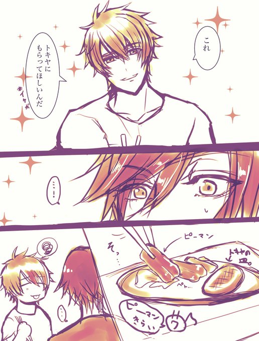 トキヤ「行儀が悪い」(心臓にも悪い) ※でも食べてくれる ゆじさんのツイートがツボに入ってしまったので音也とトキヤ描きました🙌 一生こういうのやっててほしい…🫑 twitter.com/o_riga/status/…