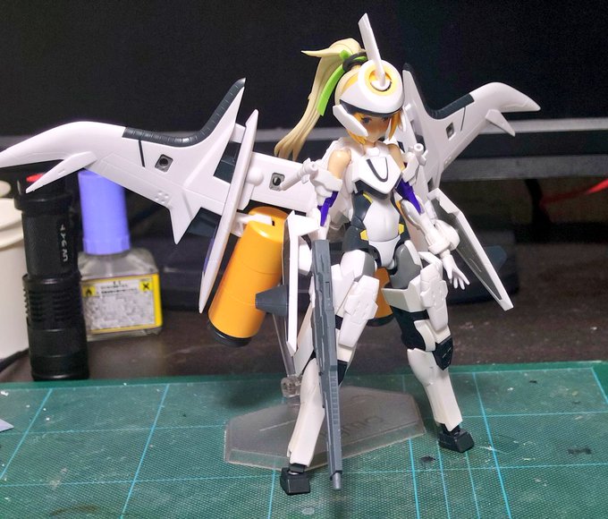 2023年1作品目 天使型「エクス・アーンヴァル」完成しました! 元キットの面影を感じられるようなシルエットラインを目指してミキシングしました。(1/8) #メガミデバイス #武装神姫