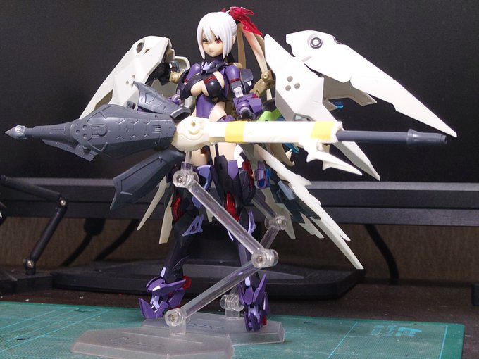 3 7 手癖で細かいところを弄ってゆく。 可動範囲とか兼ね合いでメガミMSGやノーマル楓の腹部パーツ組み込み。 此処からどれくらい武装を盛るかは考え中。 #メガミデバイス 23/04/25 22:55