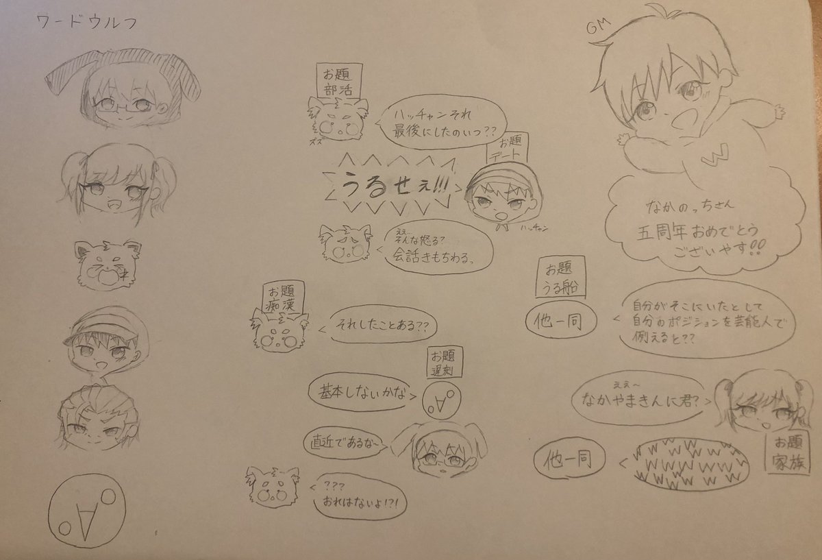 ワードウルフマジで面白い😂😂またやって欲しいです✨アーカイブ見てきます🙋♀️🙋♀️ #うるさくてすみま船 #なつぴょんアート #みさとらん補充中 #ハッチャンの絵 #ズズ #番画 #しらすぴやっほゃ詩人