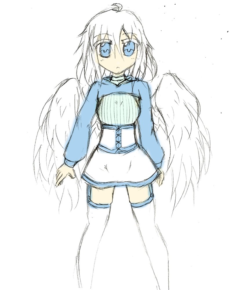 ( 'ω')その前にさっき描いてたらくがきを 某上しかないパーカーと某背中バックリニットを合わせてコルセットで締めれば羽根っ子用服に早変わり