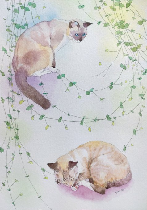 4月は猫ちゃん3点とオーダー作品を描きました🐾 #今月描いた絵を晒そう #透明水彩 #watercolor #ねこ #cat #order 先程いいねくださった方すみません。訂正箇所があり再掲します。