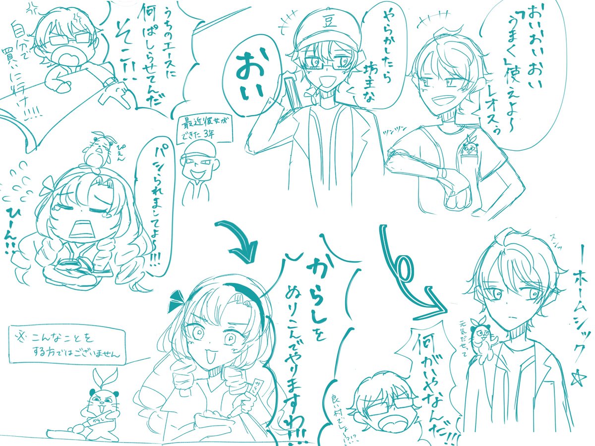 配信で面白かったところと妄想ラクガキ #まめねことレオス #描いた晴 #サロメ百万展 #にじさんじアルプススタンド