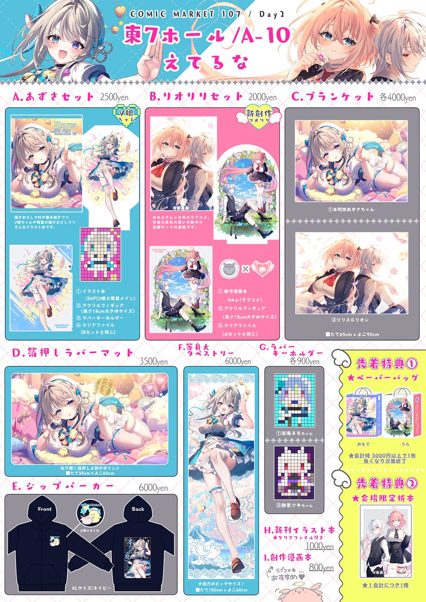 【C107お品書き】 12/31(2日目)東7ホール A-10『えてるな』 💘創作漫画(64P) 🐥本阿弥あずさちゃん がメインです! 当日はよろしくお願いいたします✨ 受注や委託については後日アナウンスします📢