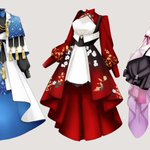 2 68 アズール、ジェイド、フロイドのイメージドレス考えてみました🦈🐙🐬 各寮服をベースにデザインしてます #twst夢 #twstファンアート #twstプラス 21/03/02 20:11