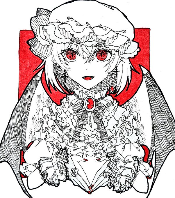 アナログ単色塗りお嬢様🟥🌹 #東方Project #レミリア・スカーレット #東方イラスト #コピックイラスト