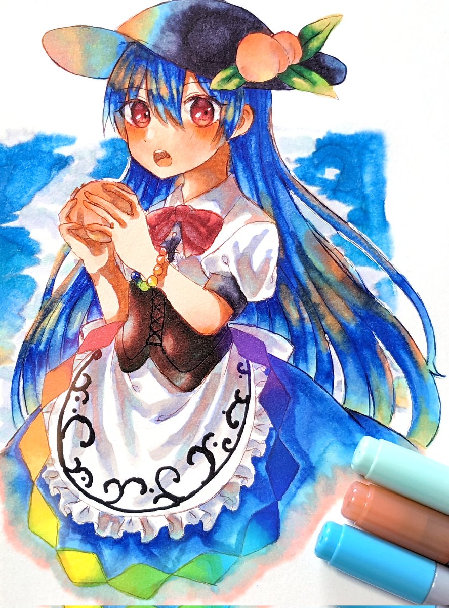 コピックで天子ちゃん💙☁🍑 #東方Project #比那名居天子 #東方イラスト
