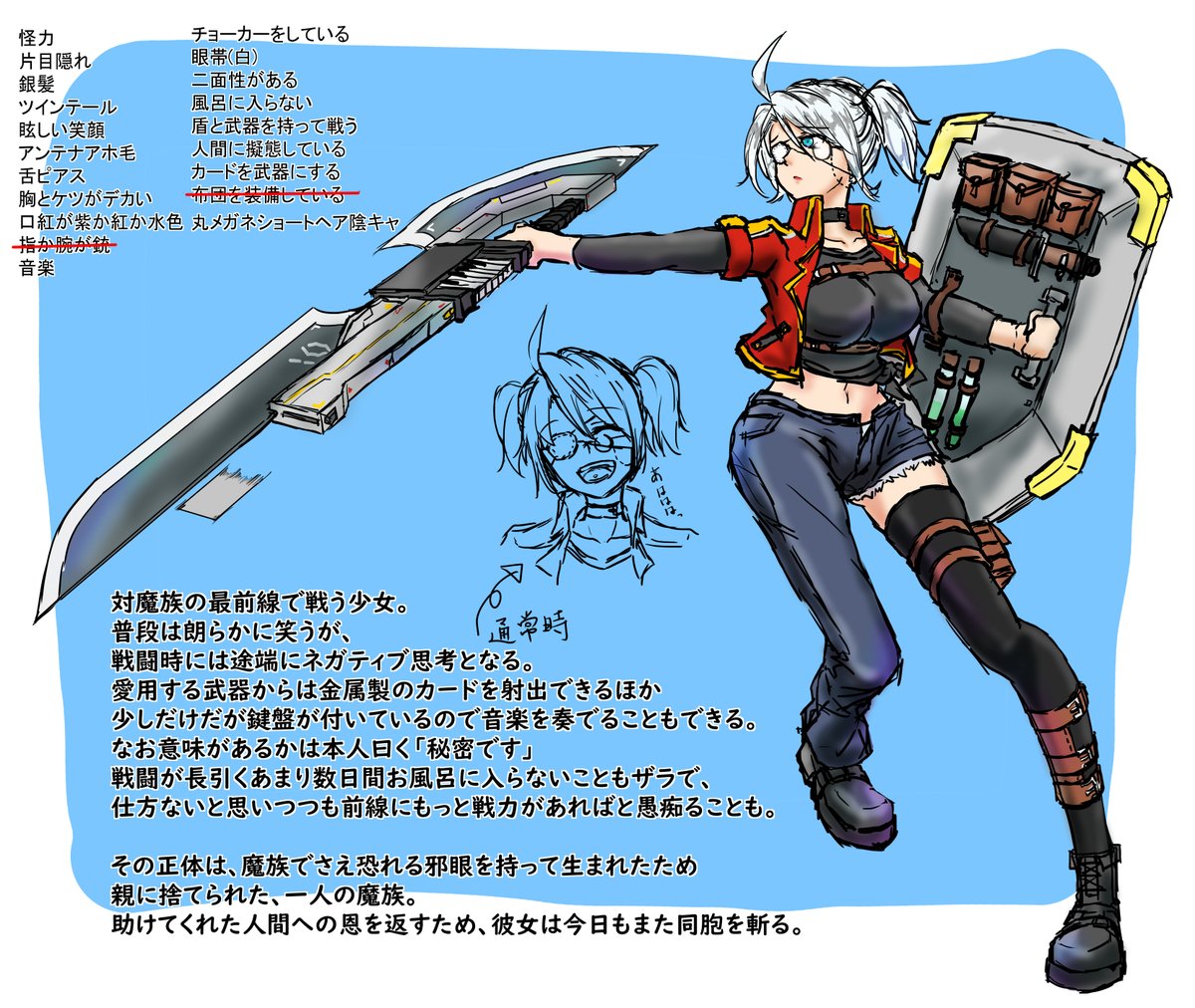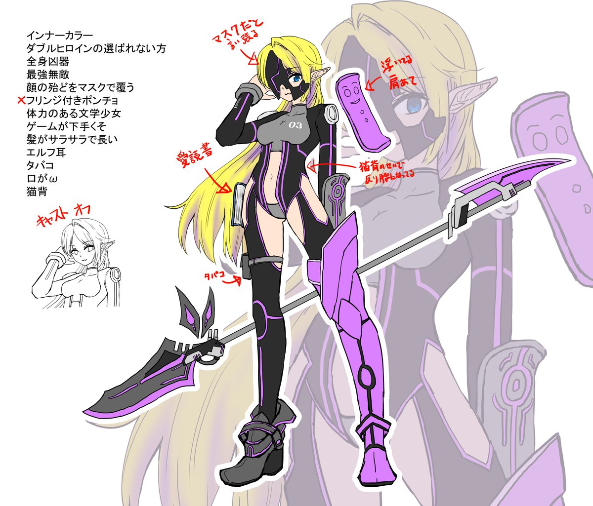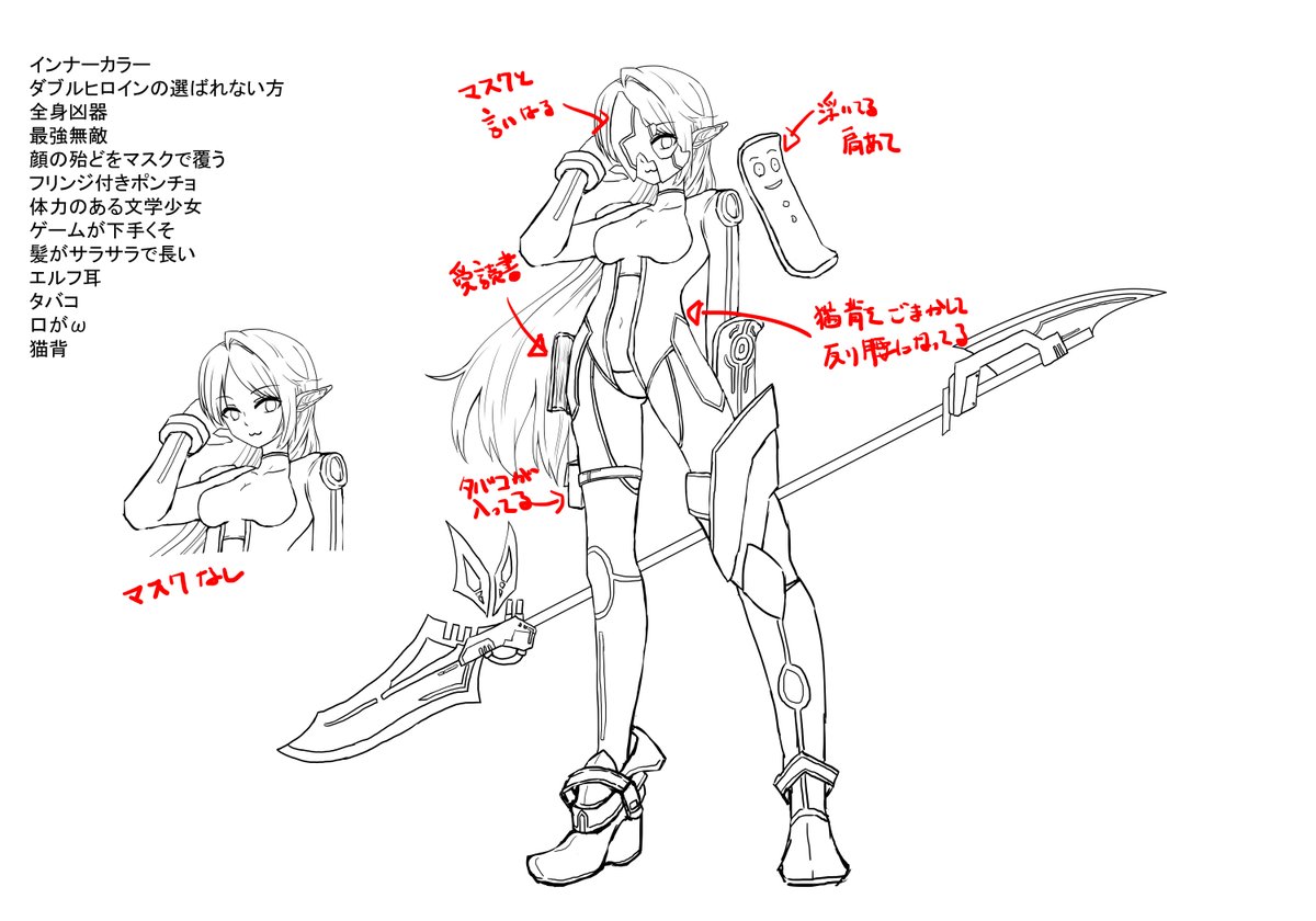 どうしても時間なくて、下書きの下書きまでしかいけなかった。 割とデザイン気に入ってるから完成させてあげたかった。 #幽焼け #最強ヒロインを作ろう