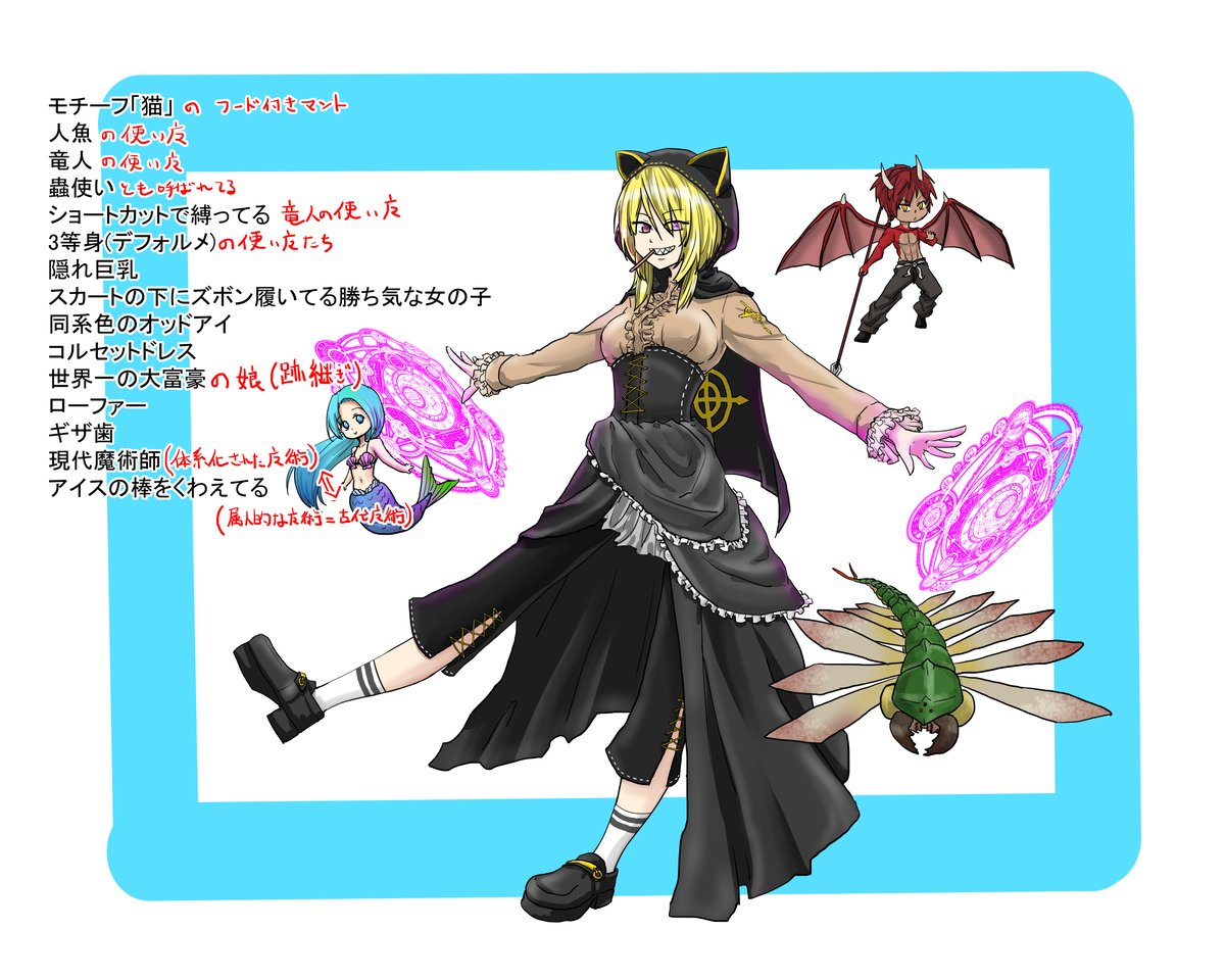 0 3 まったく思いつかなかったので、可愛くならなかったし要素の拾い方も雑になってしまった。反省。 時間ないので影なしべた塗り。 #幽焼け #最強ヒロインを作ろう 23/01/13 21:46