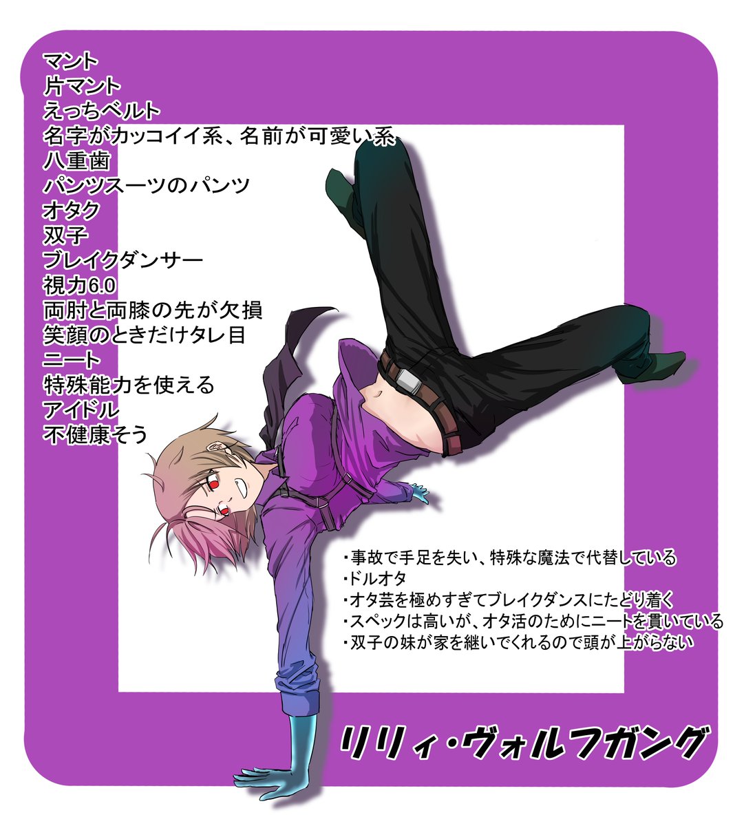整合性気にせず脳死で組み合わせた子を暫定エントリー。 廃人はどうあがいても1枚絵では他と合わず、天体は文字列の意味が分からなかった。 別の子も思いついてるので時間あったらもう一枚描きたい。 #幽焼け #最強ヒロインを作ろう