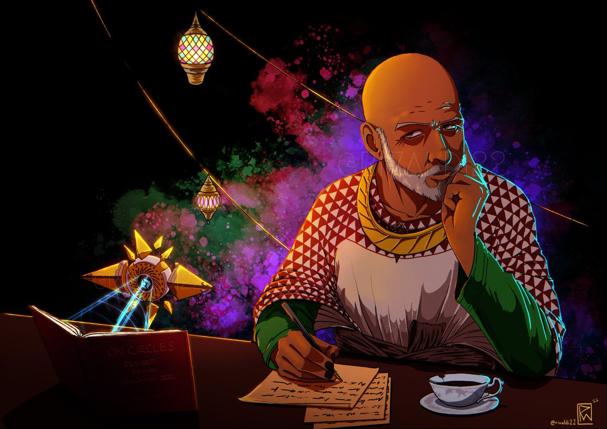 "Wow—Osiris, have you *read* this?" "Of *course* I have—several times! It's a fascinating text; she is a master of her field." "You're telling me. Say, what's that you're writing there?" "Errata. For her next revision." My Dawning gift exchange piece for @SolPariah6 #Destiny2Art