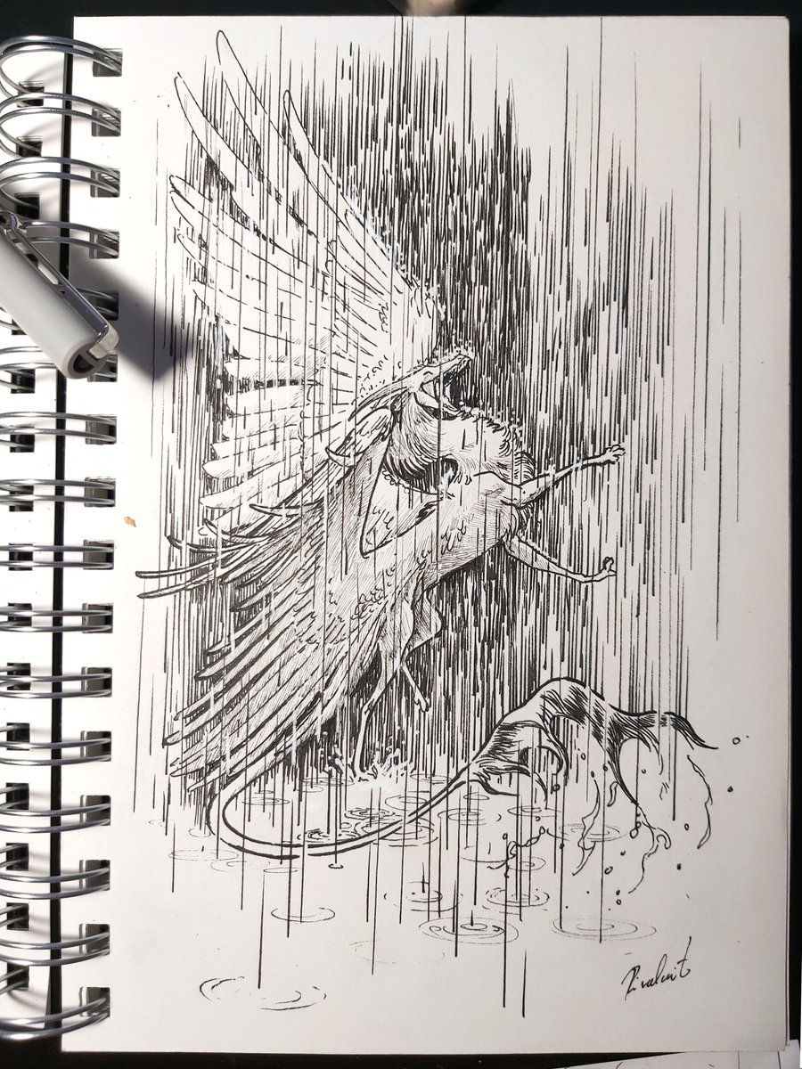 This young dragon silblings came into heavy rain. The good thing is that they always have protection against it right with them :) - Better make the best out of the situation! 🐉🐉🌧️☔️ #dragon #rainyday #inktober #inktober2020 #inkdrawing