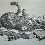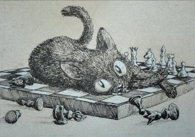Kitty would love to play with you. But the urge to push everything over every border possible kind of interferes with the game 😼♟️🎮. She is now the king and queen of the board! #inktober #inktober2020 #inkdrawing #Catober2020