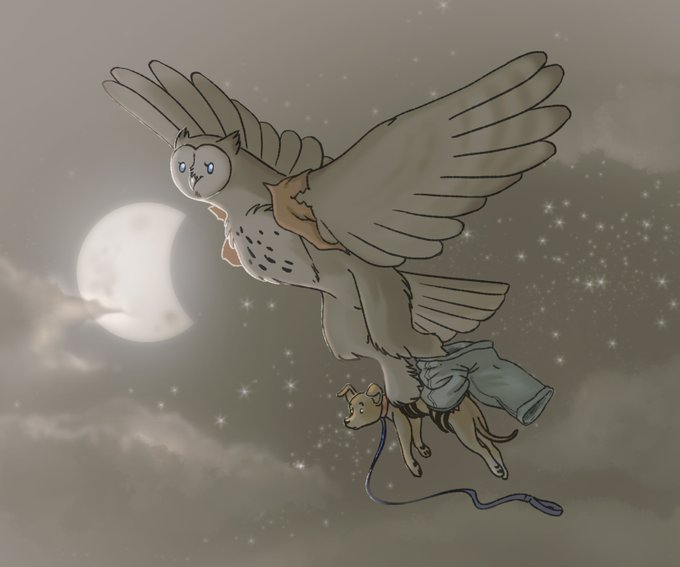 This wereowl fella was taking the dog for a walk but stayed out too long. the night came and now imagine the surprise on the puppers as it was carried off to who knows where :O i guess in the future "walkies" will be a lot faster! #weretober #inktober #transformation #furry