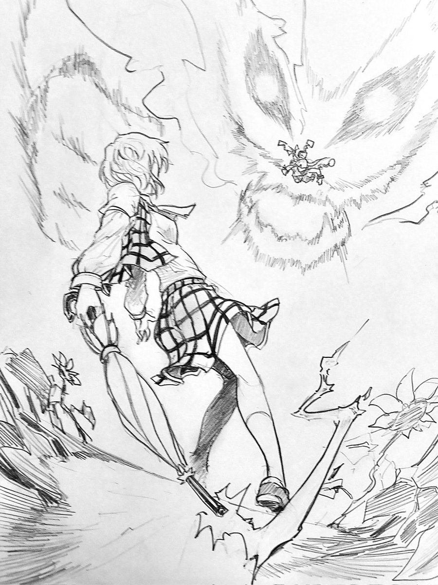 昨日が #東方 わんどろ「深夜の真剣お絵描き60分一本勝負」10周年だそうで、お題から描かせて頂きました。10周年おめでとうございます❗🥳 これからも参加させて頂きます。