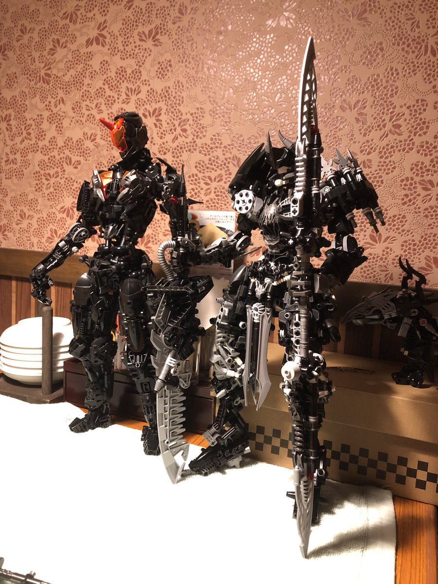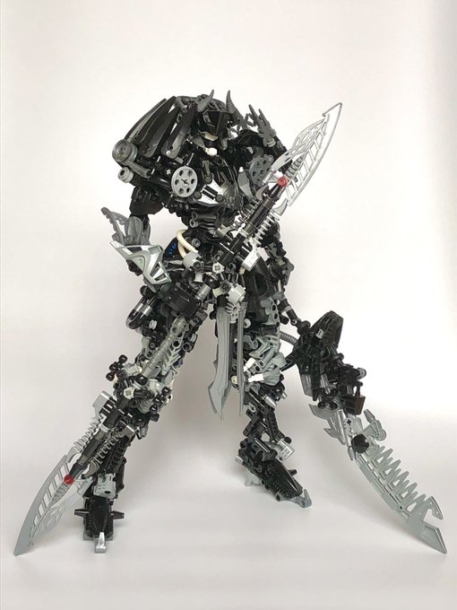 新作「黒鉄の騎士」完成しました! 「黄金の騎士」と対になる存在として作りました。 大剣と合体する双剣を使って戦います! #デカニクル #bionicle #LEGO