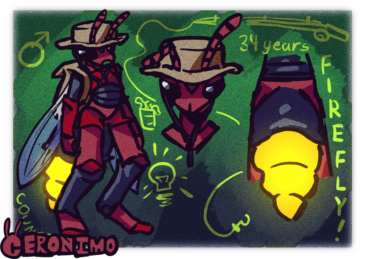 Geronimo the Firefly Bumpkin!~ (OCtober Day 2) Water + Fireflies [#inktoberwithpine + #shunuttober] #Inktober