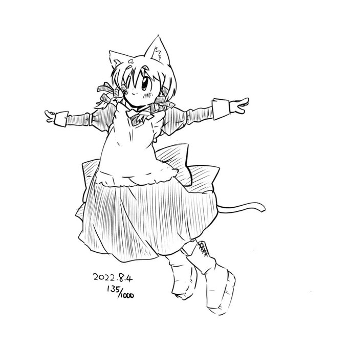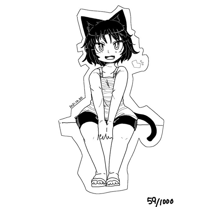 10 21 練習59枚目、福島さん(ヒロさん) 黒菜ちゃんをドットペンで描いてみた 2枚目は本来外枠だけ黒くしようとしたら 偶然できたもの 21/10/20 16:38