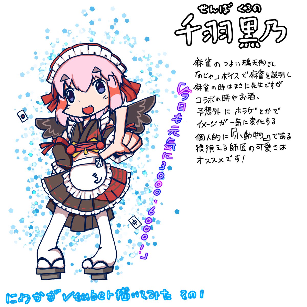 Vtuberさん描いてみた一人目「千羽黒乃」さん 2枚目はキャラ単体で