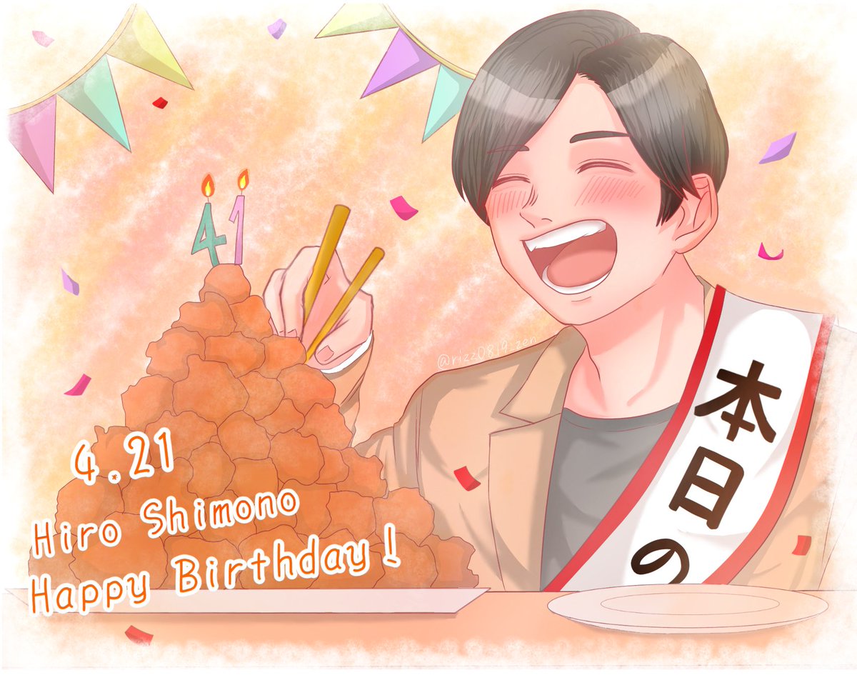 下野さん!41歳のお誕生日おめでとうございます🎉 下野さんに出逢ってから、毎日たくさんの幸せを貰っています🥳 美味しい唐揚げを頬張る下野さんが大好きです🐔🥰 これからも応援しています🥳💕 #下野紘 さん #下野紘誕生祭2021