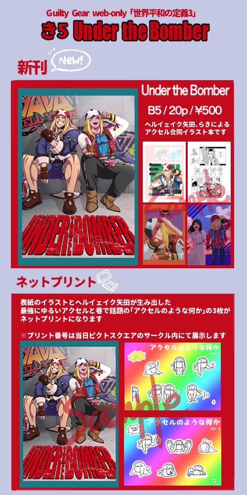 12月4日に矢田さん(@rTLiuPGurZA3NTI )と合同で参加する「世界平和の定義3」でのお品書きになります! アクセルイラスト本にて書き下ろしのイラストも2枚載せておりますので、是非お手に取って頂けたらなと思います🇬🇧 よろしくお願いしますー! #世界平和の定義3 #GuiltyGearWebOnly twitter.com/rkrk_rkgk/stat…