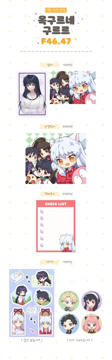 💌7월 23-24일 서코 인포 💌부스위치- F46,47 요굴(@yogurutuS2 ) 또솜(@ttosom58) 로하(@R_o_ha) 로서(@Losirhere)님과 함께 참가합니다! 잘 부탁드려요❤️ 🔸이누야샤,스파이패밀리 📋자세한 인포는>> posty.pe/5msr4t