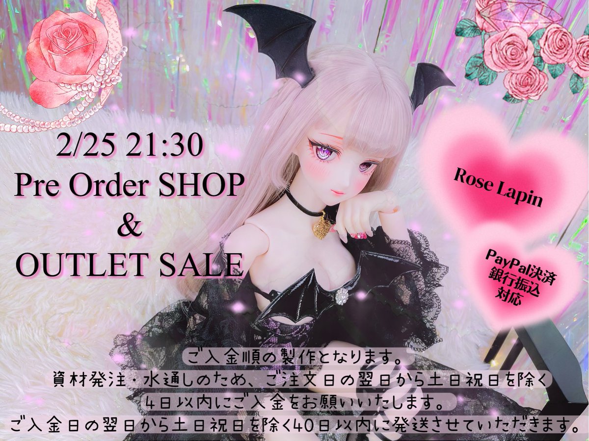 💐RTのご協力お願いします💐 今夜20:30に新作をupします💎 新作はプレビュー中なので、気になる物に再入荷希望をお願いします🙇♀️ 1枚目の画像は白も作れます🤍再販アイテムも沢山あるので是非ご覧ください🎀 ショップは数日開けておく予定です! roselapindoll.cart.fc2.com #RoseLapin