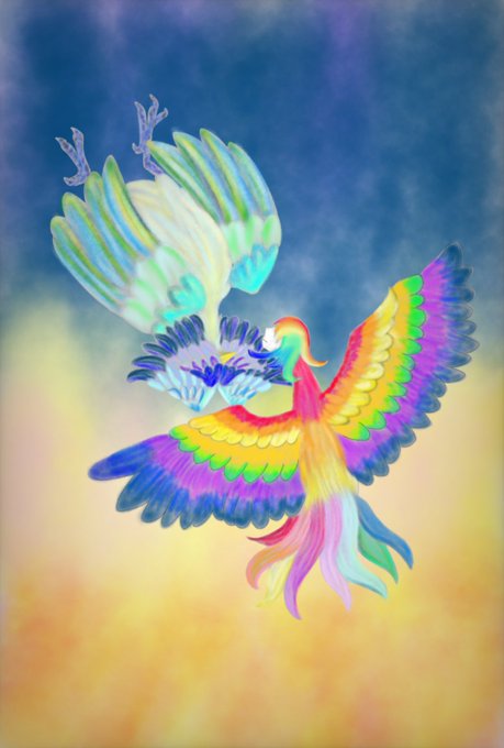 #作品を載せて自分の作品を知ってもらおう 色んな技法で創作の神様「虹の鳥」を描いてます!