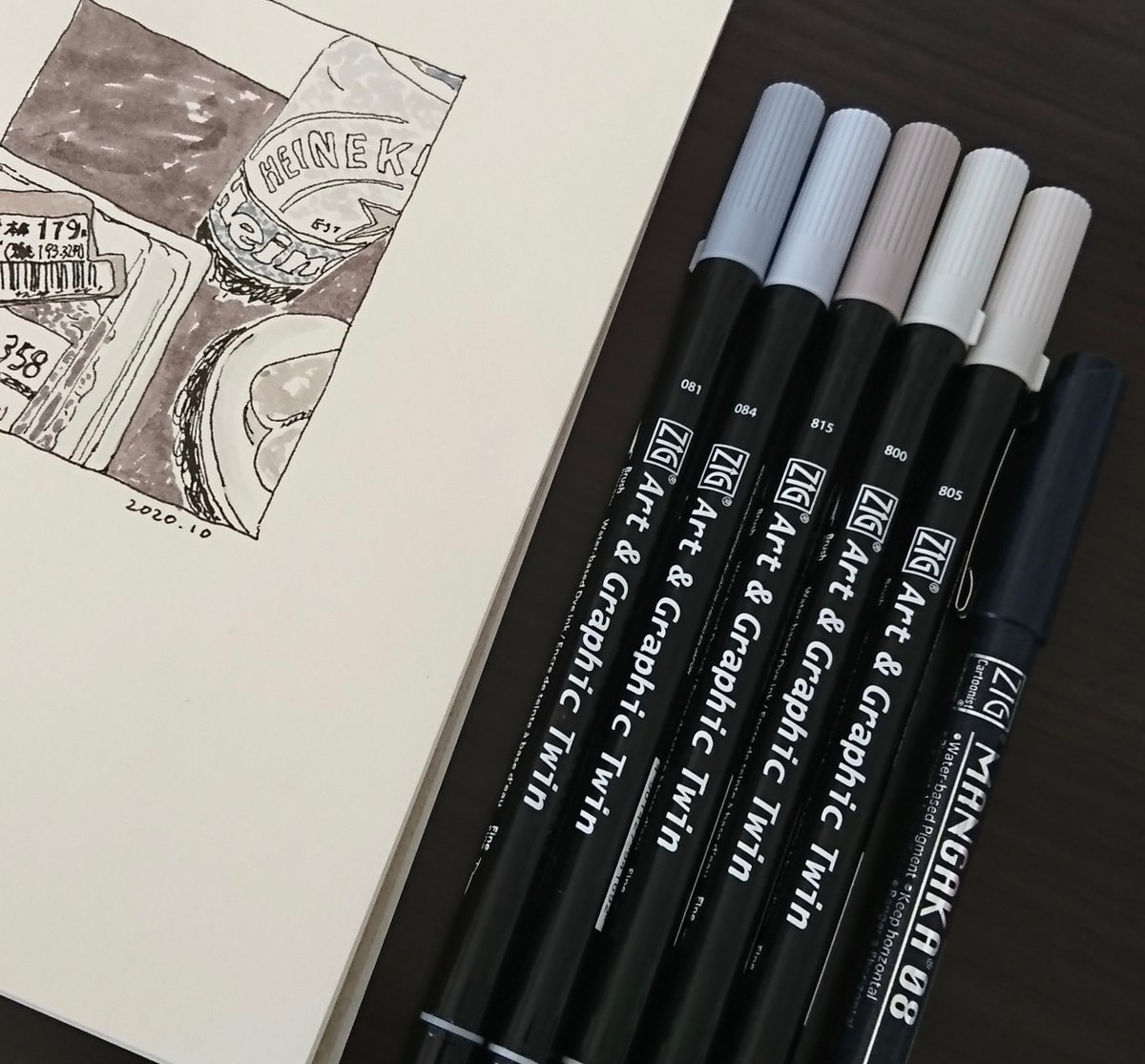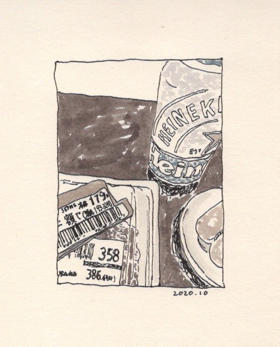 夜、ビールとつまみ #kuretake_inktober #Inktober #kuretake #inktober2020