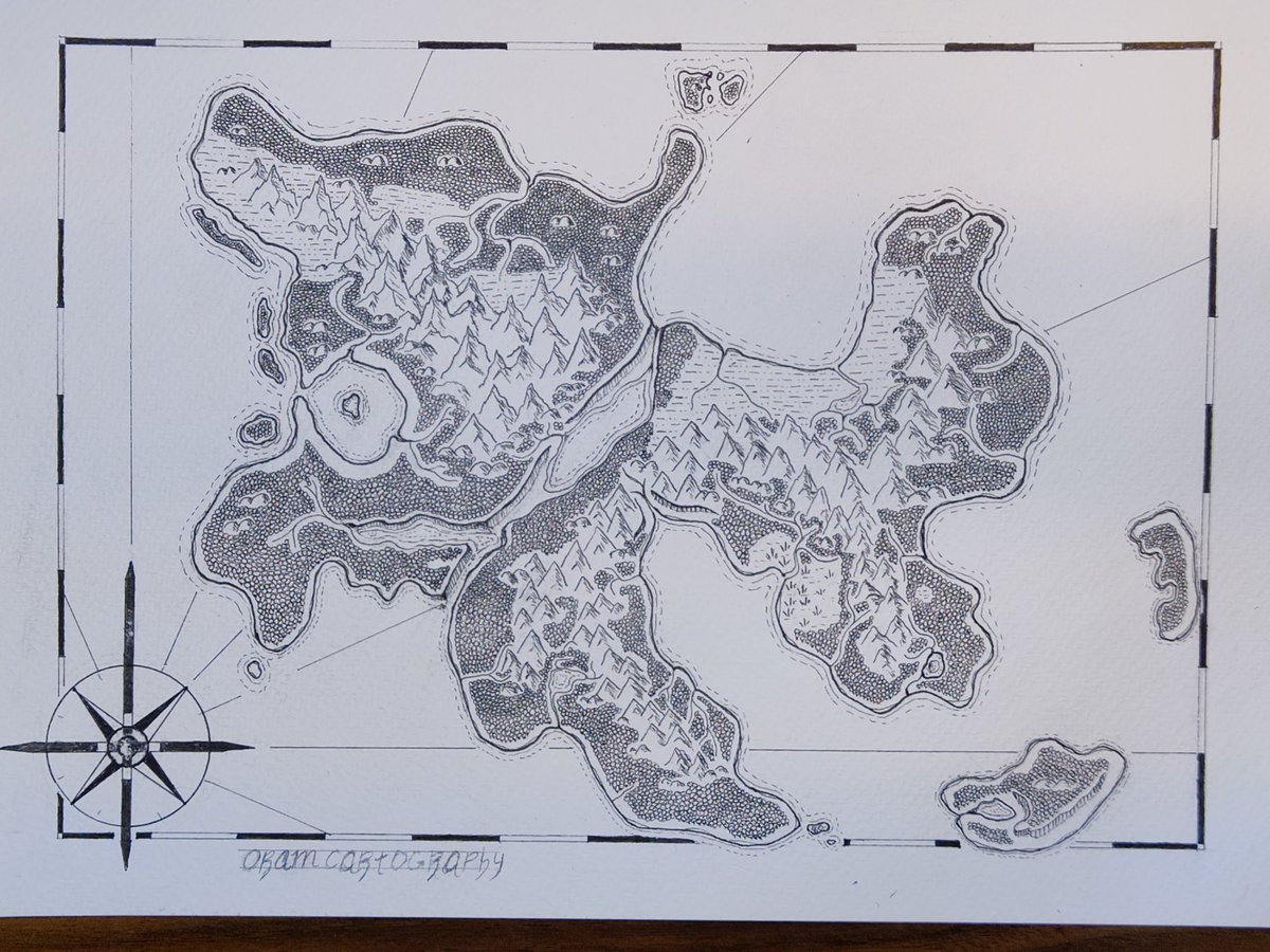 Done for today. Not too bad for the first map drawn in over twenty years. #DnD #dndart #dnd5e #cartography #dungeonsanddragons #ttrpg #art #fantasy #fantasyart