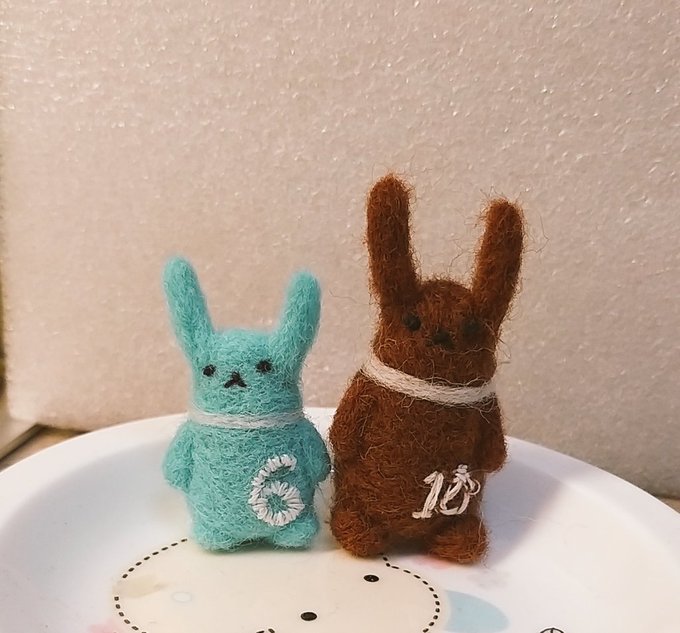 6月&10月的兔子誕生啦~ 不過體型怎麼差有點多!? (數字好醜請見諒>< #ツキウタ #月歌 #procellarum #羊毛フェルト #水無月淚 #神無月郁