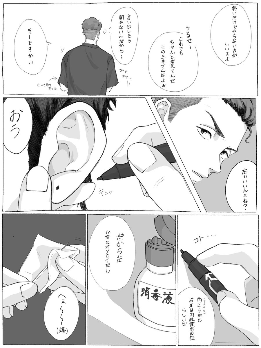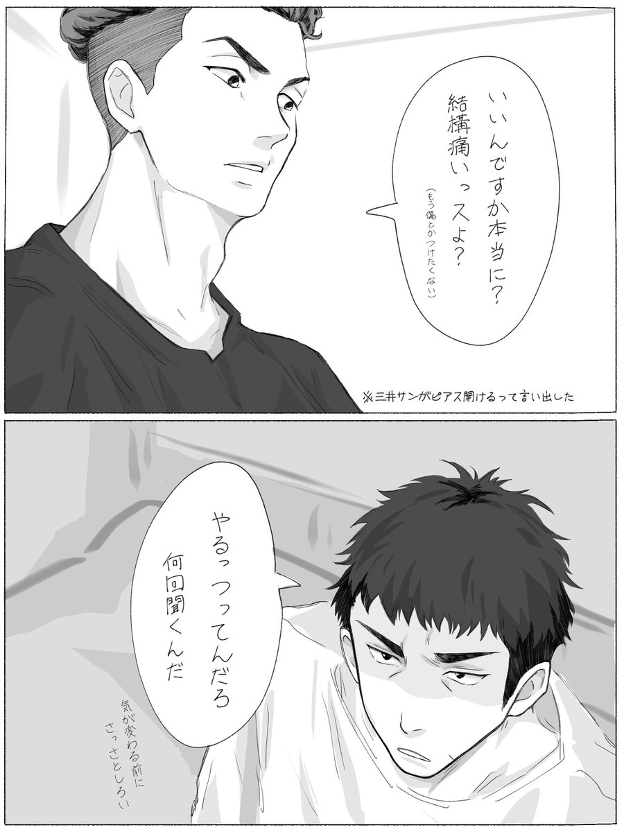 99 1207 リョ三 ※ミにピアスが開く話 (4/6) 23/08/06 00:41