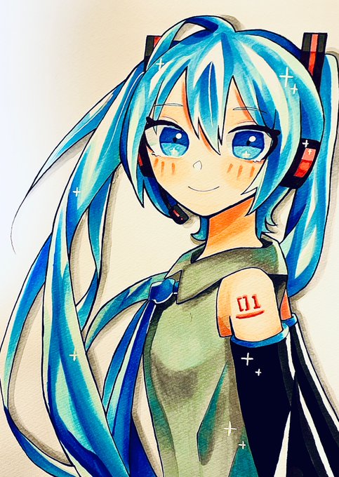 #初音ミク #イラスト #絵描きさんと繫がりたい アナログミクちゃん再び…