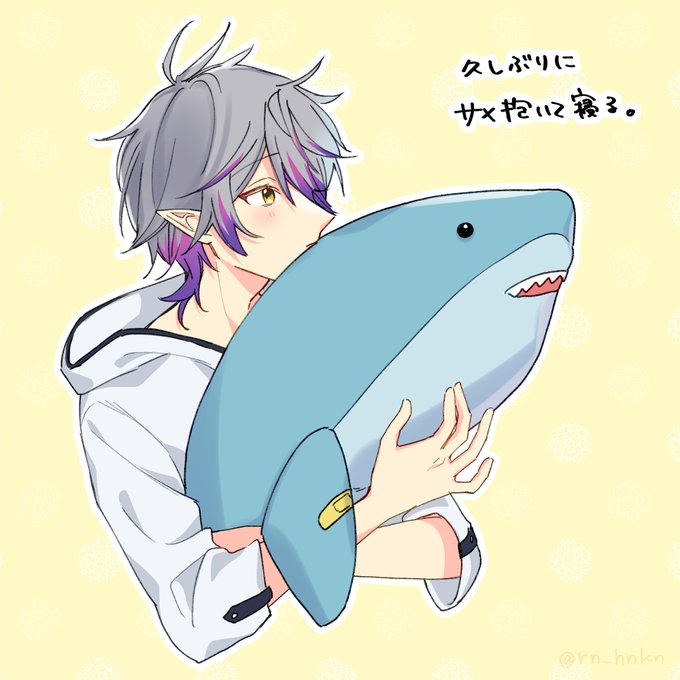 #ミハイラスト サメを抱いて寝るって…可愛いを詰めすぎ、では…???