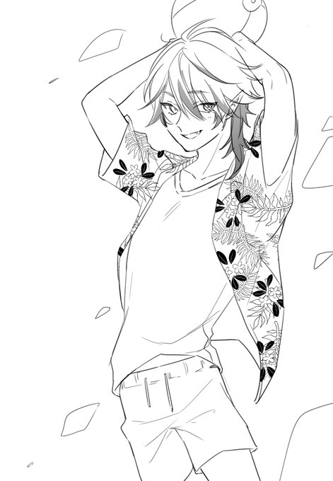 4 22 推しのアロハシャツ短パンに感動しすぎたので取り急ぎ… 泳ぎつよつよで服着たまま泳ぐミハイくんとかあまりに"良"では…??? #ミハイラスト 22/05/17 23:41