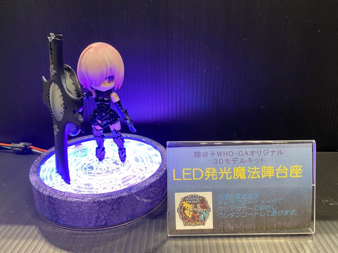 10 19 #wf2020w #FGO 当日私のビジネスパートナーの 電飾職人さんの 作品も塗装済み完成品で展示して 電飾台座キットを販売します。 オリジナル魔法陣台座 (魔法陣デザイン フーガさん) LEDで発光!カラーチェンジします。 未塗装キット¥3500です。 20/02/07 20:56
