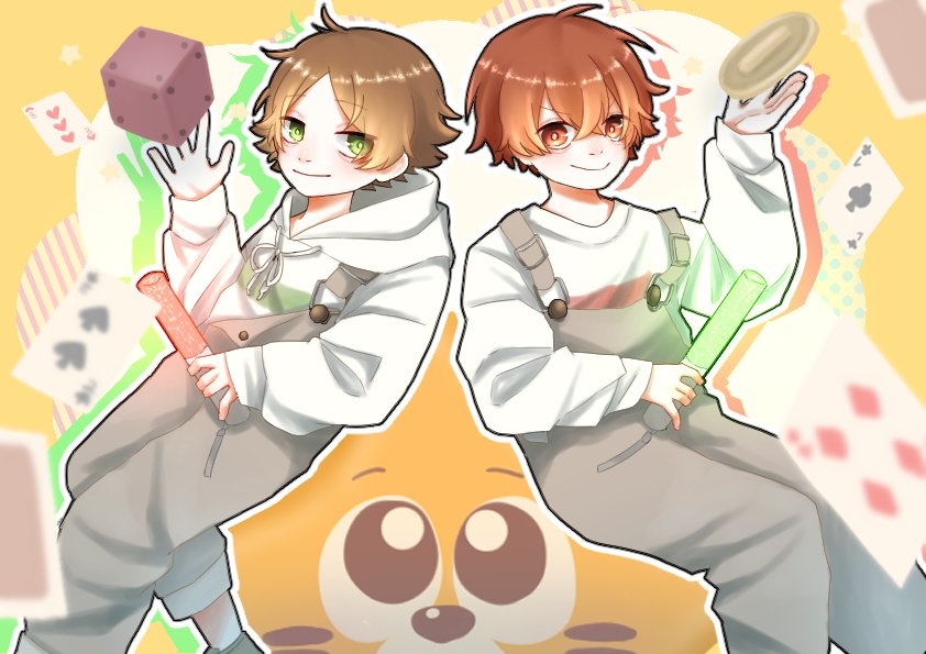 『 最強ライバル敵ナシ! 』 生涯ライバル/うらたぬき&となりの坂田。 #うらたぬ王国の美術館 #坂田です #浦島坂田船 #イラスト
