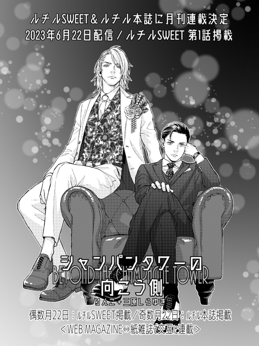 【告知】#拡散希望(1/2) ◎WEB雑誌「ルチルSWEET」 偶数月22日配信/配信から2か月は無料 ◎紙雑誌「ルチル」 奇数月22日発売/電子書店配信翌月5日 WEB⇔紙の2誌を行き来する形で 「#シャンパンタワーの向こう側」連載開始です! 第1話が「ルチルSWEET」に掲載です! rutile-official.jp/rutile-sweet.h…