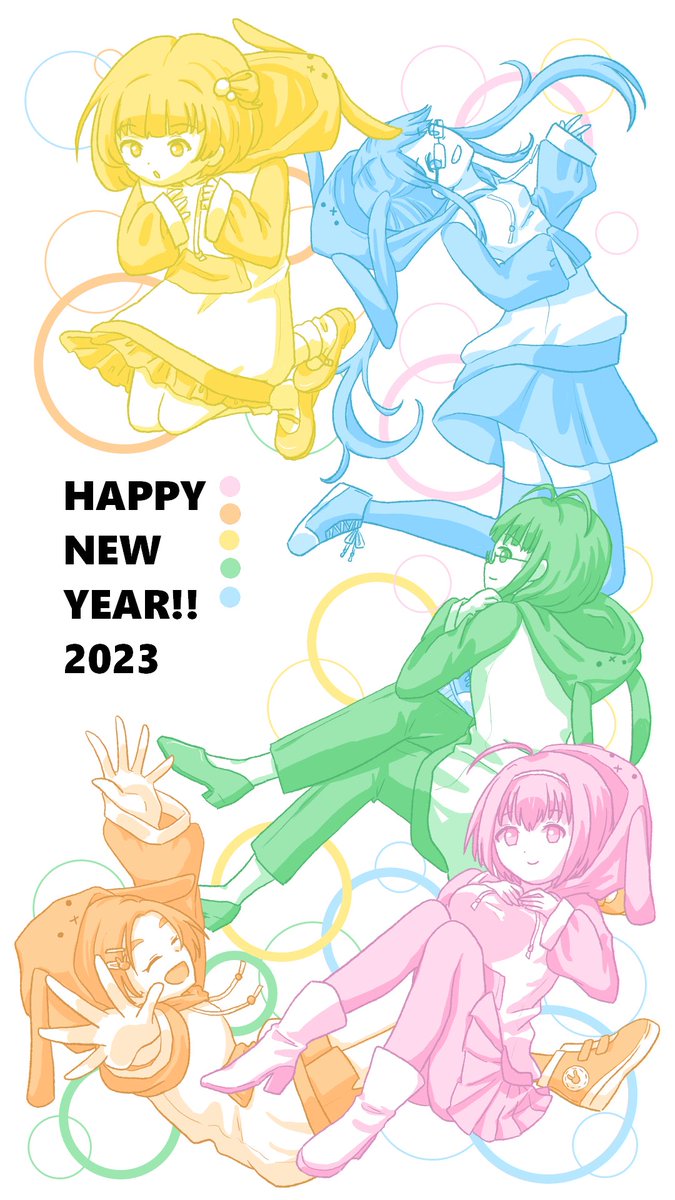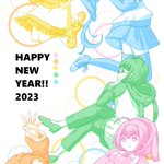 11 14 大遅刻ですがあけましておめでとうございます🌅 今年もよろしくお願いします〜!! 卯年ということで描き初めはうさ耳パーカーの育ちゃんと三峰と律子さんと美穂ちゃんと薫ちゃんです🐰 23/01/07 18:11