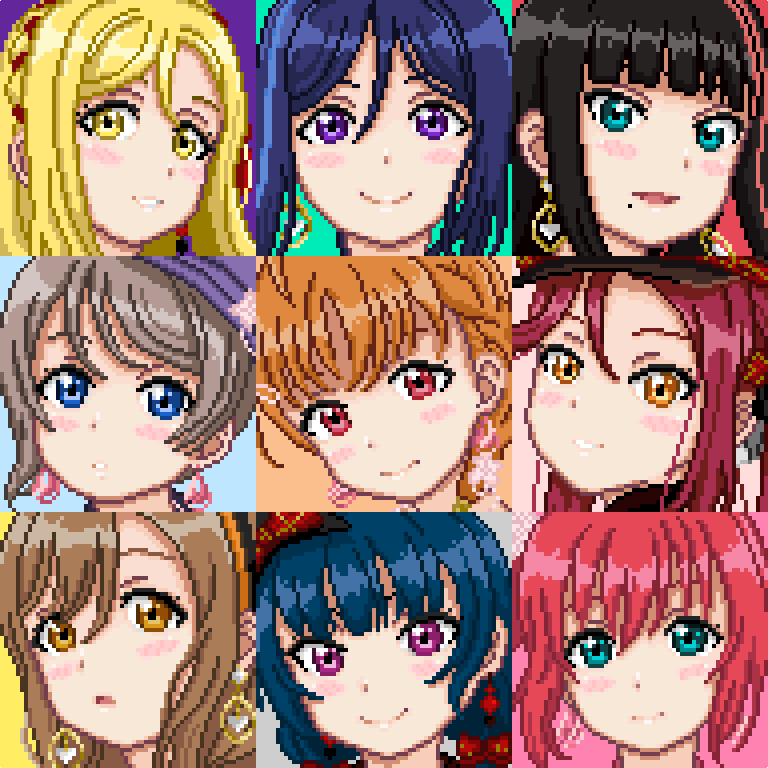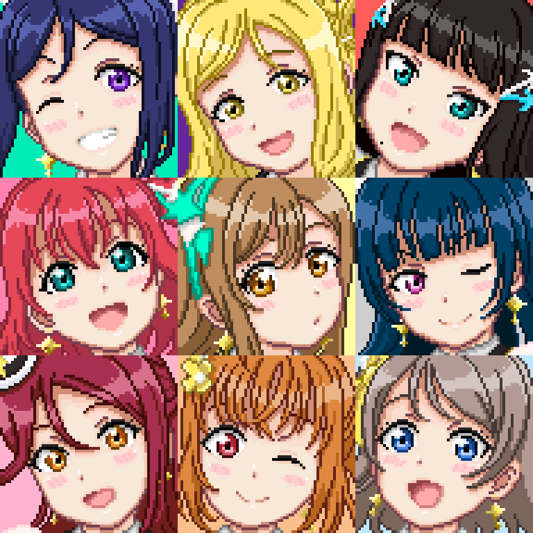 Aqoursちゃん詰め合わせセット #ドット絵 #ラブライブ!サンシャイン!! #Aqours pixiv.net/artworks/97148…