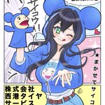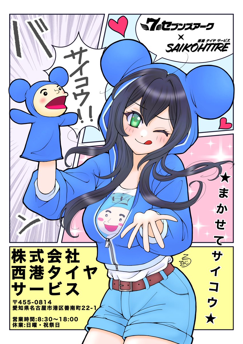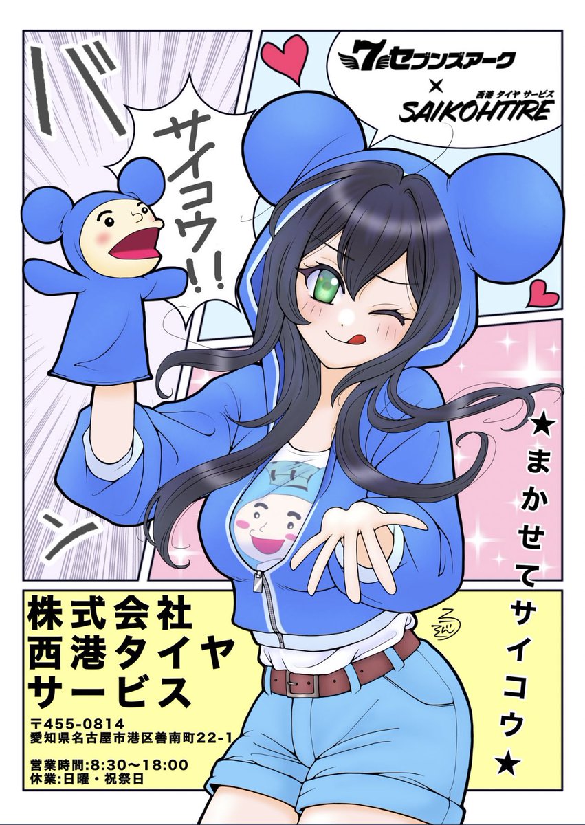 #セブンズアークx西港タイヤサービス 優綺(@_nanaakai )さんの企画に参加します!! サイコウちゃんの衣装を着た菜々ちゃんと店長さんのパペットです❤️ #セブンズアーク #イラスト