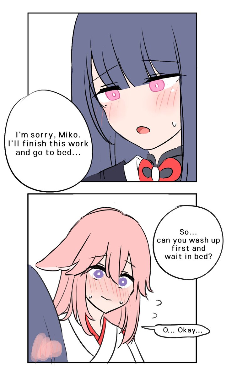 498 2582 Ei : And will you give birth to my child? Miko : Sure... ...wait, what? 이메레스 틀 참고해서 그린 에이미코 #eimiko #yaebaal 22/03/19 12:13