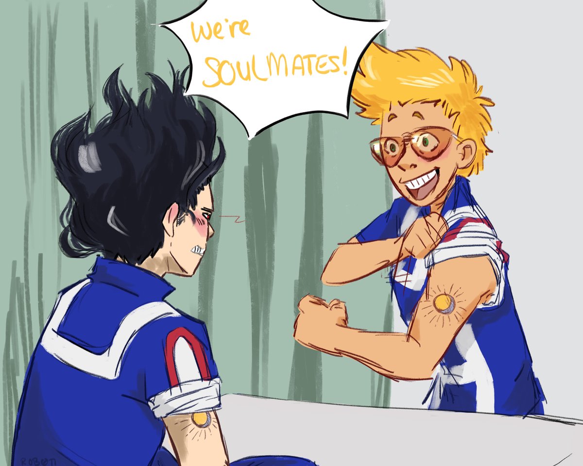 Recently @Bi_the_By wrote a cute little Soulmate AU thread and I had to draw it! It was too cute! 😭💖☀️🌙 #erasermic