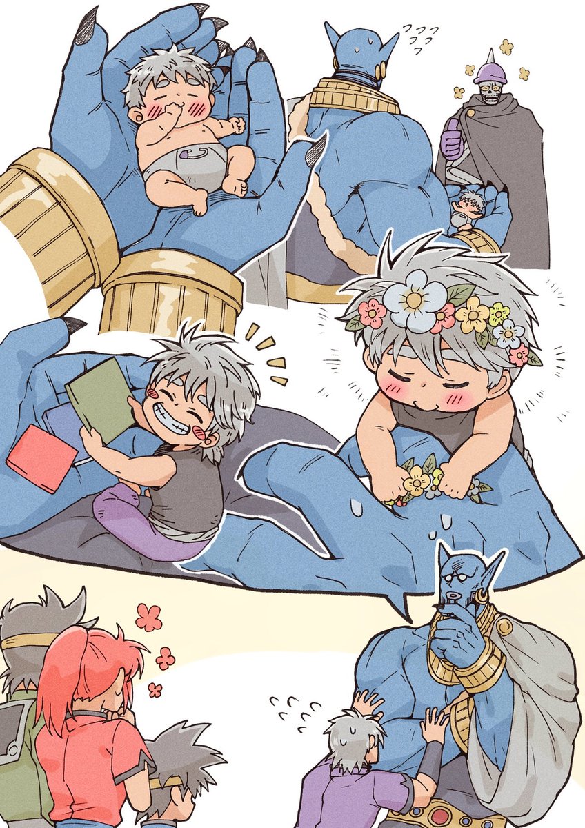 32 89 #1番目にリプきたキャラを幼児化させて2番目にリプきたキャラに抱っこさせる 子ガンガの子守りをするzmzくんと、修行で泉に落とされたチビマトを拾ったバーン様 23/01/31 21:48
