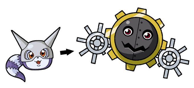 will never not strike me as weird that Caprimon/Kapurimon is the most logical option for a Hagurumon pre-evolution. literally, the closest thing to a Baby form that makes sense for a flying cogwheel is a cat with a helmet #digimon #fanart #makeitmakesense