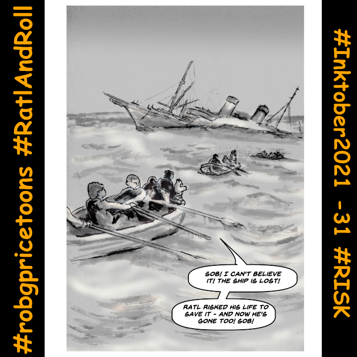 Our chaps are back in the Captain's good books? Sure, they're getting on like a house on... Oh, dear! #spark #inktober2021 #RatlAndRoll #comics #comic #characterart #comicbooks #comicart #clipstudiopaint #comicbook #cartoons #webcomic #cartoonist #comicartist #inkwash #brushpens