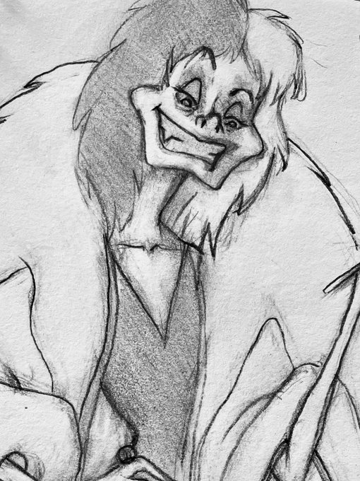 I had time for one prompt this weekend, so let it be a villain. #TheDisneyMarch #CruellaDeVil #101Dalmatians #sketchbook #retroartist #disneyfanart