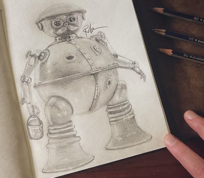 Day 14: Robot Another underground Disney classic that I really liked, especially Tik-Tok 💛 #TheDisneyMarch #sketchbook #ReturnToOZ #RetroArtist #disneyfanart #drawing
